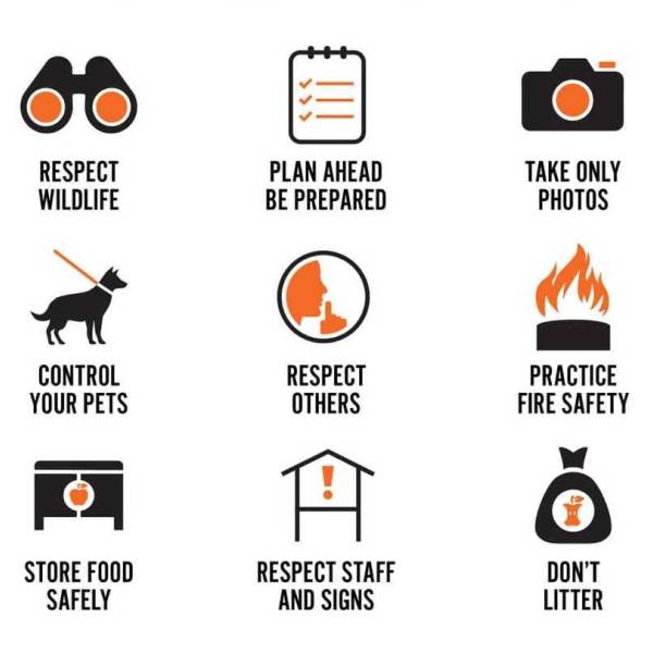 The Camper's Code has 9 rules that are really easy to follow. When all campers follow them, these good things happen: Camping continues to be enjoyable for all; Nature remains pristine and beautiful; People camping in the same area become friends; Animals stay wild and free.