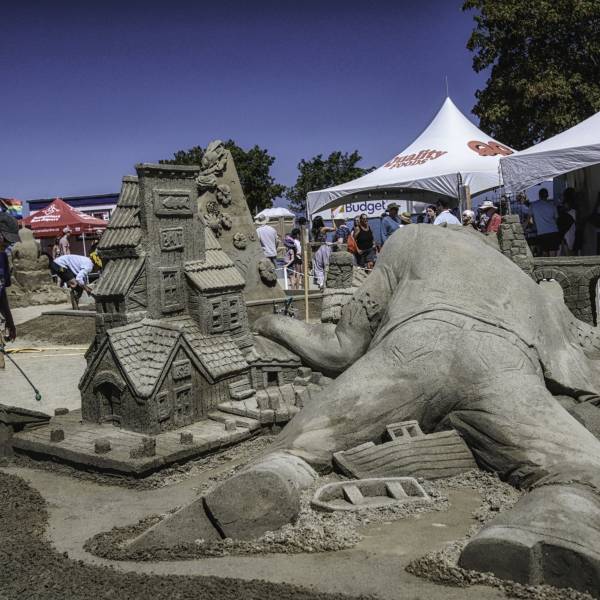 Don’t miss the Coastal Community Credit Union’s Sculpture Light Up on August 15 and 16, running from dusk until 11 PM. As the sun sets, the towering sand creations come to life, bathed in vibrant, coloured spotlights that highlight intricate textures and cast dramatic shadows. This captivating after-dark spectacle offers a magical experience, transforming the already-impressive sculptures into stunning works of art illuminated under the night sky.