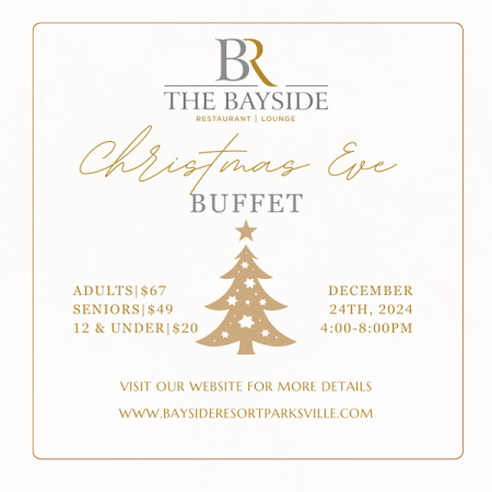 Don’t wait—reserve your spot today and let us make your Christmas Eve magical! Call us 250-248-8333 or visit www.baysideresortparksville.com for more details.