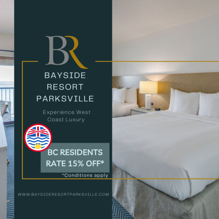 As a B.C. resident, soak in the wild beauty of the West Coast at the lowest rates of the season. Now is the time to celebrate where we live - relax at the Bayside, just far enough away to leave it all behind.