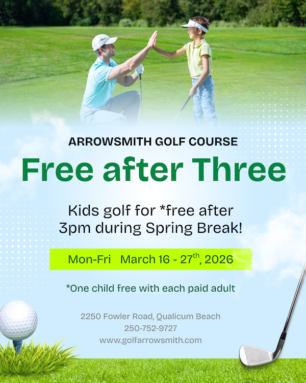 Free After Three at Arrowsmith Golf Course! Looking for a fun Spring Break activity? Bring the kids out for an afternoon on the course!