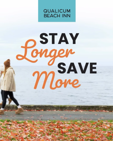 Stay longer, save more at the Qualicum Beach Inn — this one’s for the midweek adventurers! Enjoy your third night free when you book 2+ nights Sunday through Thursday.