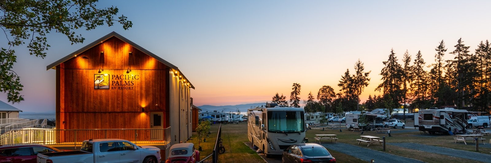 Welcome to newly opened Pacific Palms RV Resort located right at Parksville Bay neighbouring Parksville Community Park!