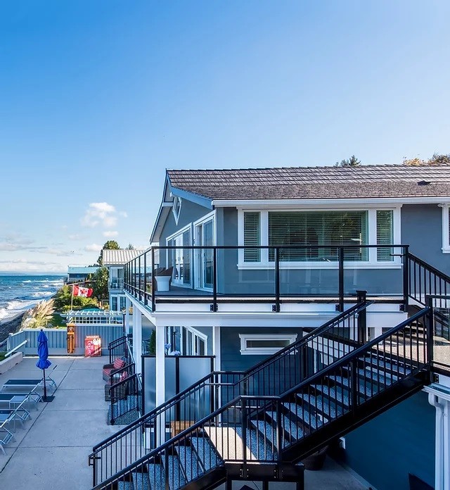 This gated and private property is renowned for its beauty, beach access, and attention to detail. Guests have unlimited and complimentary access to the pool, sauna, hot tub, fitness centre, and lounging patio at the Qualicum Beach Inn across the street.