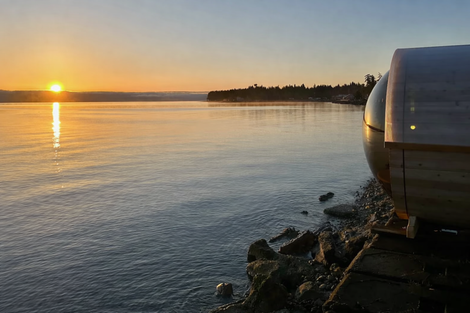 Cozy cabins, beachfront RV sites, and even a unique beachside barrel sauna. Waterfront beach access and serene views? Check and check.