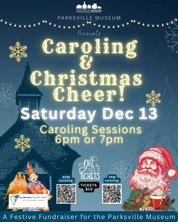 Join us for a magical evening of Caroling and Christmas Cheer at the Parksville Museum! Bring your family and friends to celebrate the season with song, community, and festive fun in our cozy heritage church, guaranteed to get you in the holiday spirit.