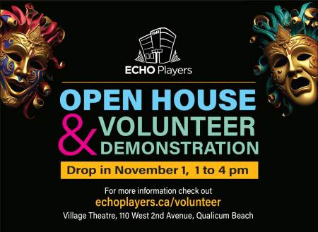 Have you ever dreamed of being part of the magic of live theatre? Now’s your chance! ECHO Players invites the community to its Open House and Volunteer Demonstration on Saturday, November 1 from 1 to 4 p.m. at the Village Theatre in Qualicum Beach.