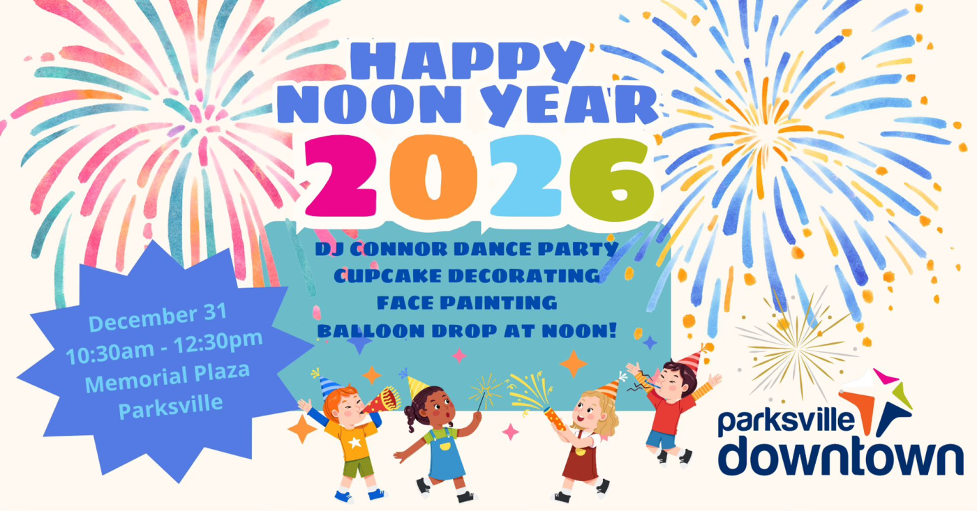Join our special version of a New Year’s celebration for families, kids and everyone who has that New Year's spirit! We'll be hosting a DJ dance party, cupcake decorating, and face painting, all at Memorial Plaza in downtown Parksville. Plus there will be a Happy Noon Year countdown and balloon drop at noon!