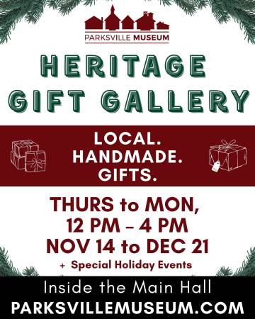 Step into the festive spirit at the Parksville Museum’s Heritage Gift Gallery — a charming 5-week holiday shopping experience set inside our historic Main Hall. This unique pop-up gallery features handcrafted, high-quality work by 28 local artists, makers, and artisans.