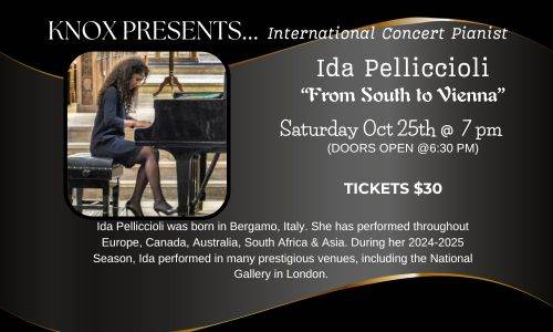 Join us for a wonderful performance from internationally renowned concert pianist Ida Pelliccioli on Saturday, October 25th at 7:00 p.m. Tickets are $30 each and available online through Eventbrite or at local retailers (cash only): Close To You Boutique & Fireside Books in Parksville and Edge Outdoors in Qualicum Beach.