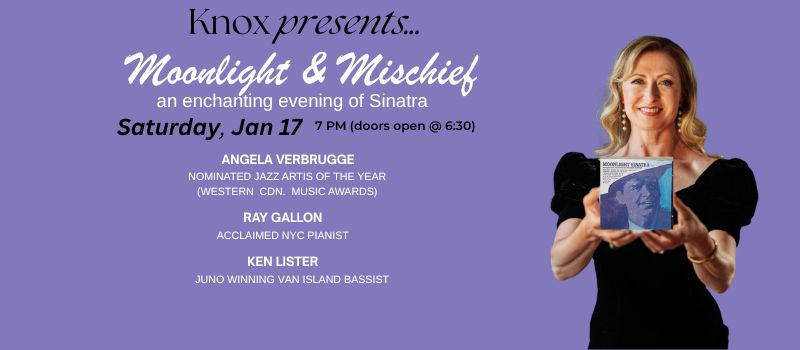 Join us for a magical evening of Sinatra with Angela Verbrugge, joined by pianist Ray Gallon, and Juno-winning bassist Ken Lister. Moonlight and Mischief: An Enchanting Evening of Sinatra.