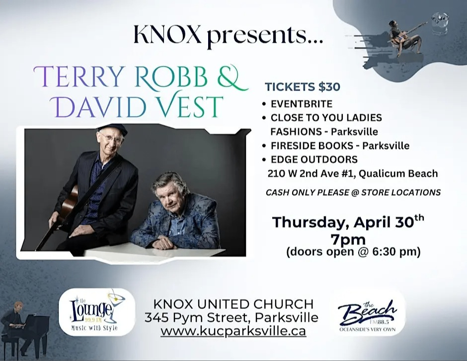 Join us for an incredible evening of blues music from the legendary Terry Robb & David Vest on Thursday, April 30th @7:00 p.m.