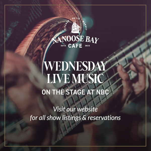 Complimentary live music for guests at Nanoose Bay Cafe on The Stage at NBC Every Wednesday 6pm-8pm. Visit the "Upcoming Events" section of our What's Happening page for all show and event listings!
