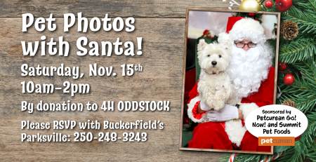 Pet Photos with Santa on Saturday, Nov. 15th, 10am–2pm.