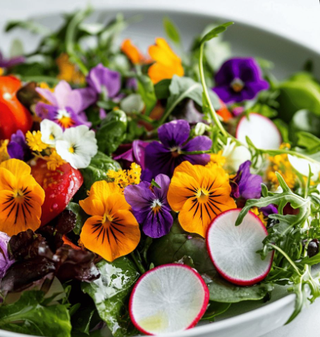 The star of the day? Our sunflower petal salad—a colorful mix of greens topped with fresh sunflower petals that bring a subtle nuttiness, a pop of sunshine, and a beautiful finishing touch.