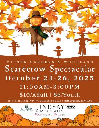 Join us in celebrating the beauty of fall in the Gardens with our Third Annual Scarecrow Spectacular! Visitors are encouraged to dress up in family-friendly costumes and wander through Scarecrow Lane to admire and vote for their favourite spooktacular scarecrow creation!
