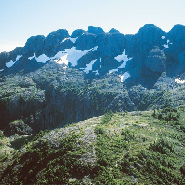 The historic Arrowsmith CPR Regional Trail was built in 1912 by the Canadian Pacific Railway to service guests at its Cameron Lake Resort. The trail winds uphill from Highway 4 through private forest lands to the Alberni-Clayoquot Regional District's park, which was previously a ski hill.